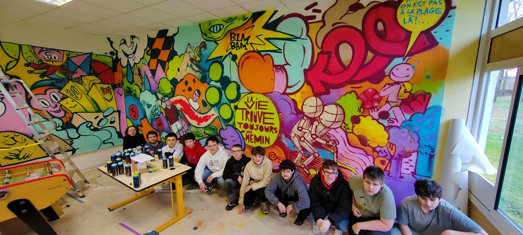 En complicitĂ© avec lâartiste Olivier Bourgois, du collectif SprayLab, et leur enseignante dâESC, nos CAPa JP 2 ont transformĂ© le bĂ©ton en mĂ©moire vive âïžđ«