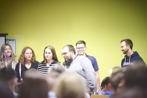 Les lauréats sont montés sur la scène de l’amphithéâtre pour célébrer, comme il se doit, cette étape importante de leur parcours 🎓🎉