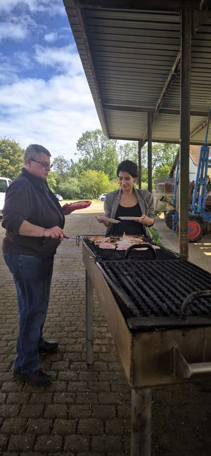 AprĂšs une matinĂ©e de prĂ©sentation, tout le monde sâest retrouvĂ© autour dâun barbecue convivial, organisĂ© avec lâaide prĂ©cieuse des BPA OSP et des salariĂ©s de la ferme đ„đđœïž