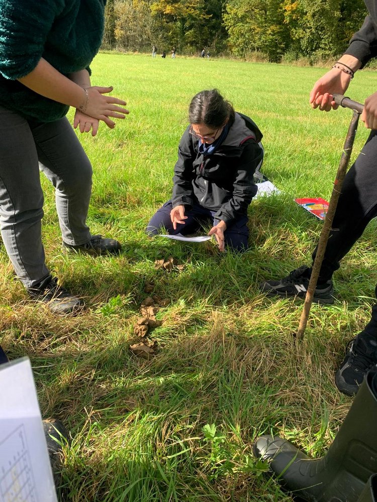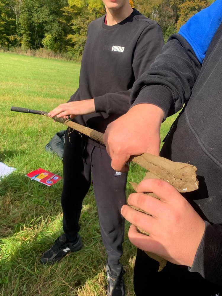 Puis place Ă lâexpĂ©rimentation sur la prairie humide du Campus, en compagnie des techniciens de lâEpage des Eaux Vives des 3 Nied. GuidĂ©s par les repĂšres Ă©tablis par le ministĂšre en charge de lâĂcologie đ, nos Ă©lĂšves ont appris Ă âlireâ un sol đ”ïž : sa morphologie (son aspect, ses nuances de couleurâŠ) et les traces parfois trĂšs discrĂštes qui rĂ©vĂšlent son degrĂ© dâhydromorphie, autrement dit, son niveau dâengorgement en eau.