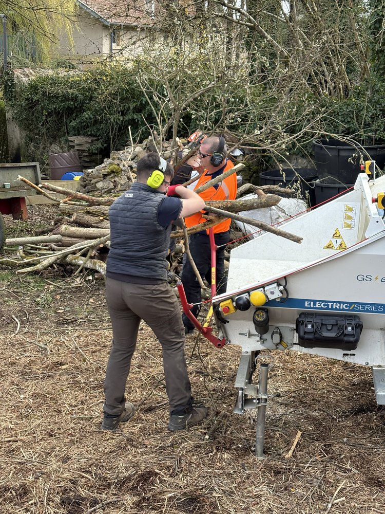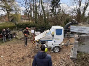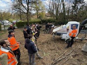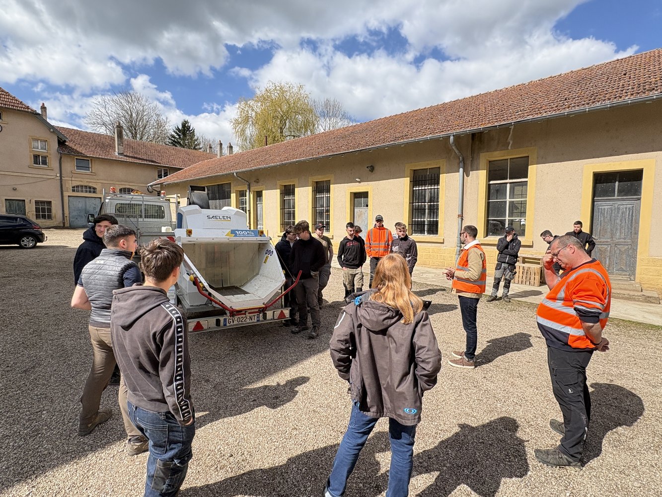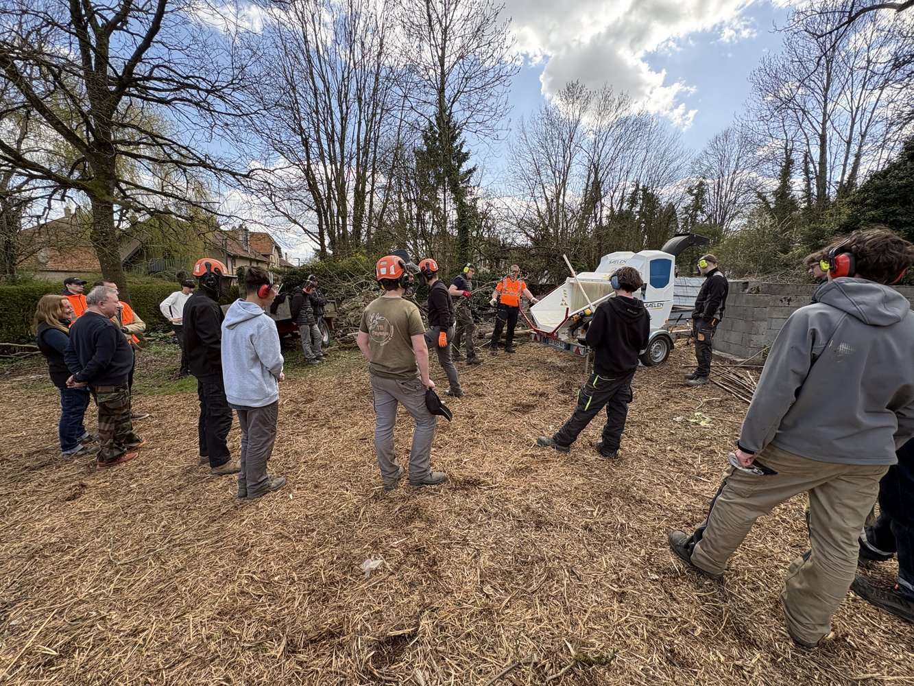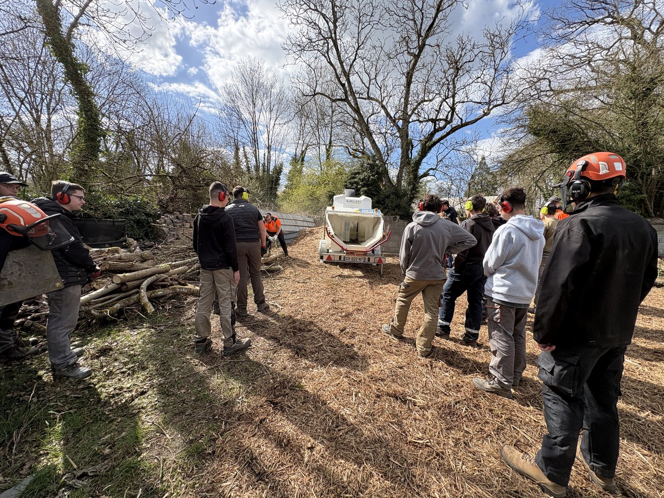 Sur la zone de compostage, nos Ă©lĂšves de Terminale AP ont assistĂ© Ă une intervention autour dâun Ă©quipement qui illustre les Ă©volutions actuelles du secteur : un broyeur Ă vĂ©gĂ©taux 100% Ă©lectrique âĄïž