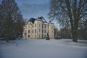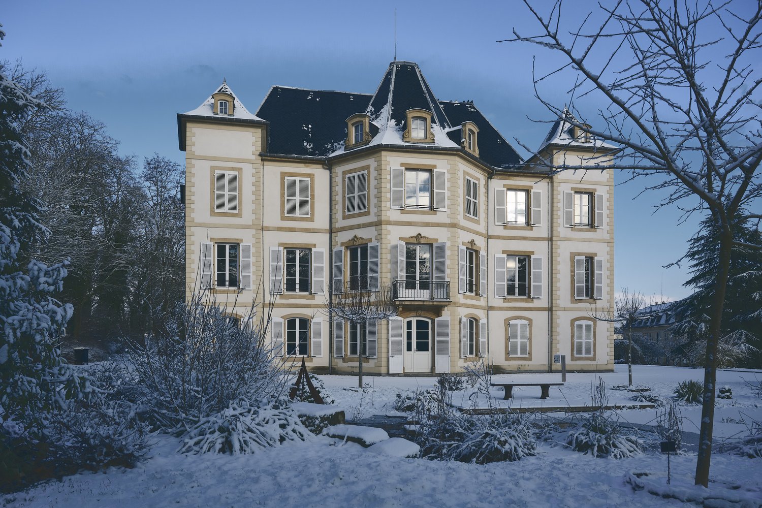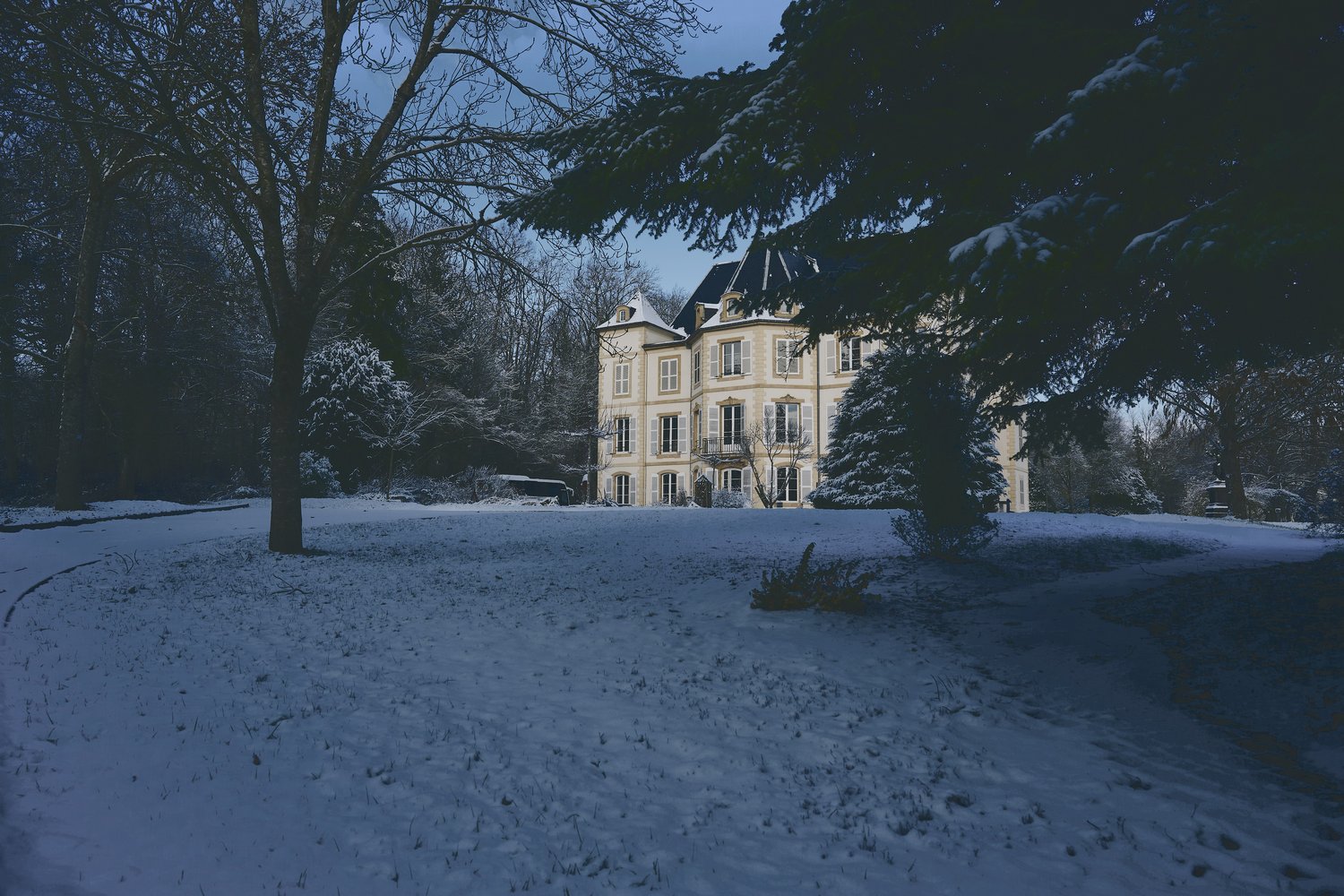 En quelques heures, le château d’Urville et son parc se sont parés d’un manteau blanc, transformant notre cadre de travail en paysage presque irréel 🏰🌨️
