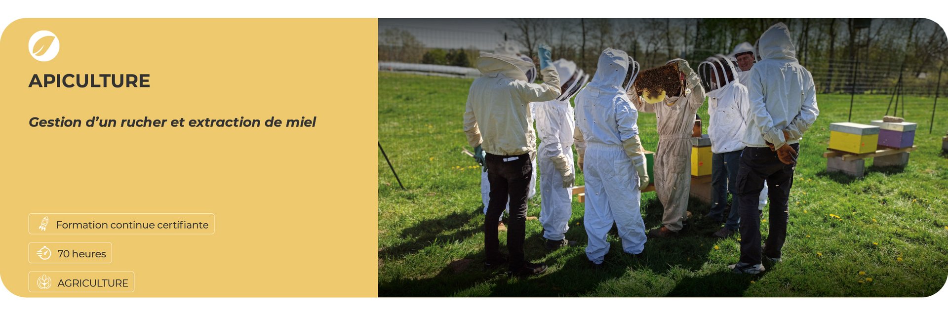 La formation vise à l’acquisition d’un module certifiant du brevet professionnel «Responsable d’Entreprise Agricole» : l’UCARE* «Réaliser les opérations de production de l’atelier apicole».