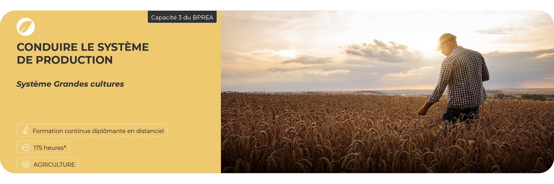 Ce parcours est adapté aux systèmes de production les grandes cultures biologiques dans sa diversité : Grandes cultures spécialisées, polyculture élevages, systèmes irrigués, paysan-boulanger…
